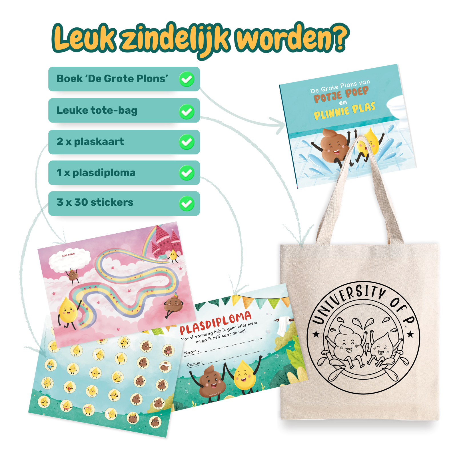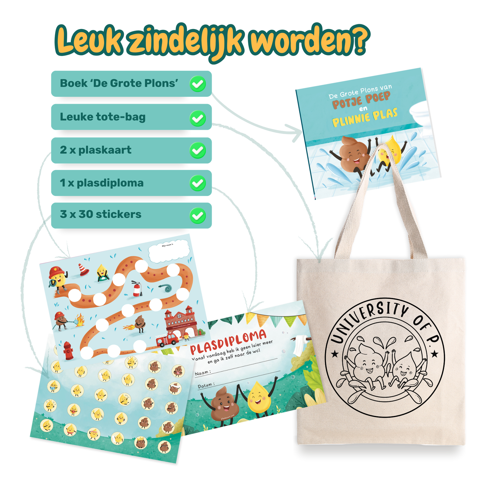 Zonder gedoe beginnen over de grote wc? Start dan met het boekje met stickers. Meteen aan de slag? Kies de set met beloningskaarten. Gaan jullie er helemaal voor? Kies de Plastas! Met plezier samen lezen, plakken én plassen!